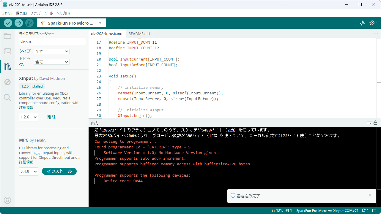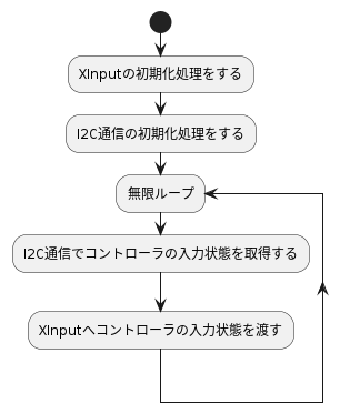 このソフトウェアは I2C 通信して、XInput のライブラリを呼んでいるだけである。