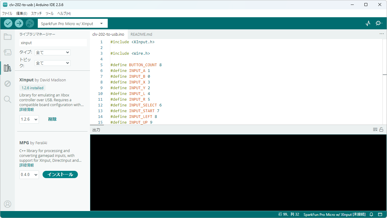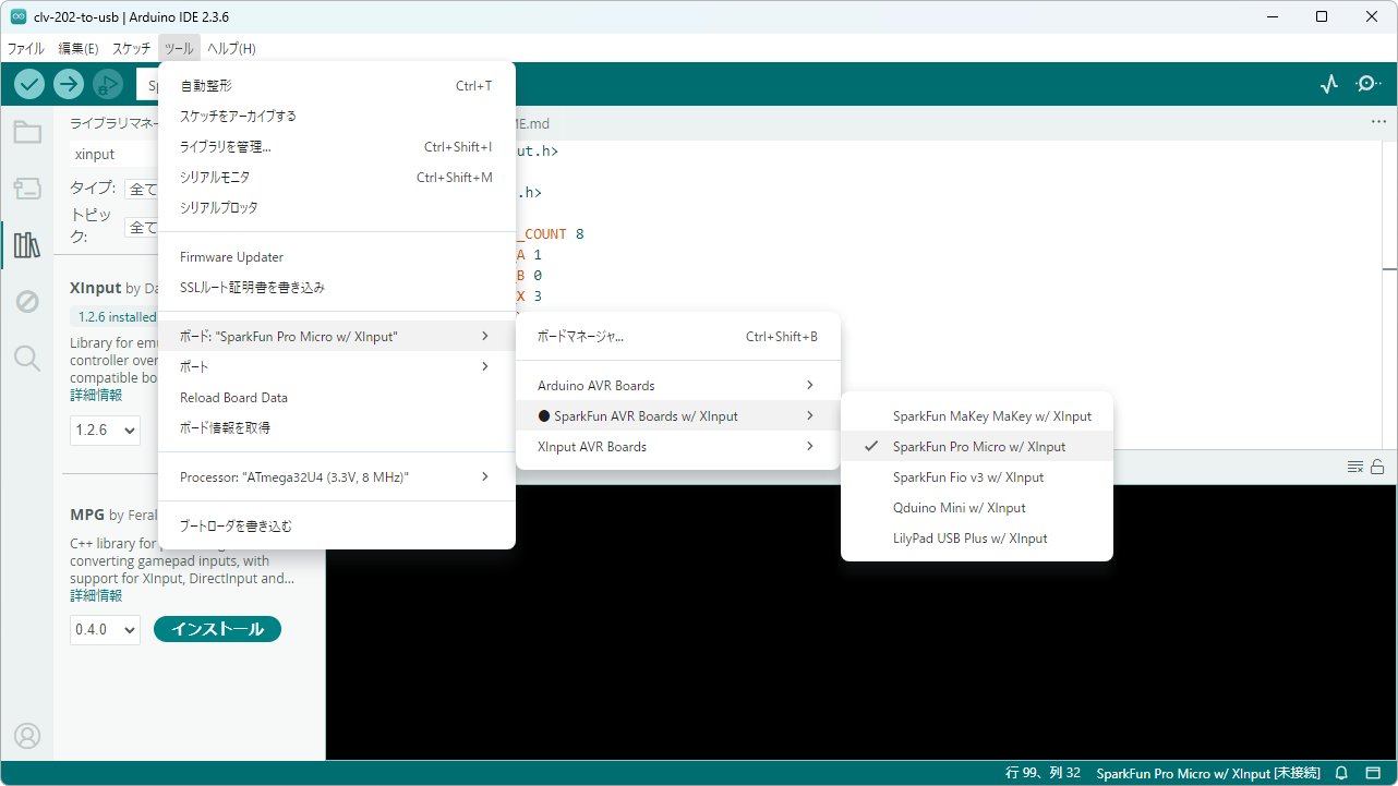 └─variants次に ツール-ライブラリの管理...から XInput をインストールする。