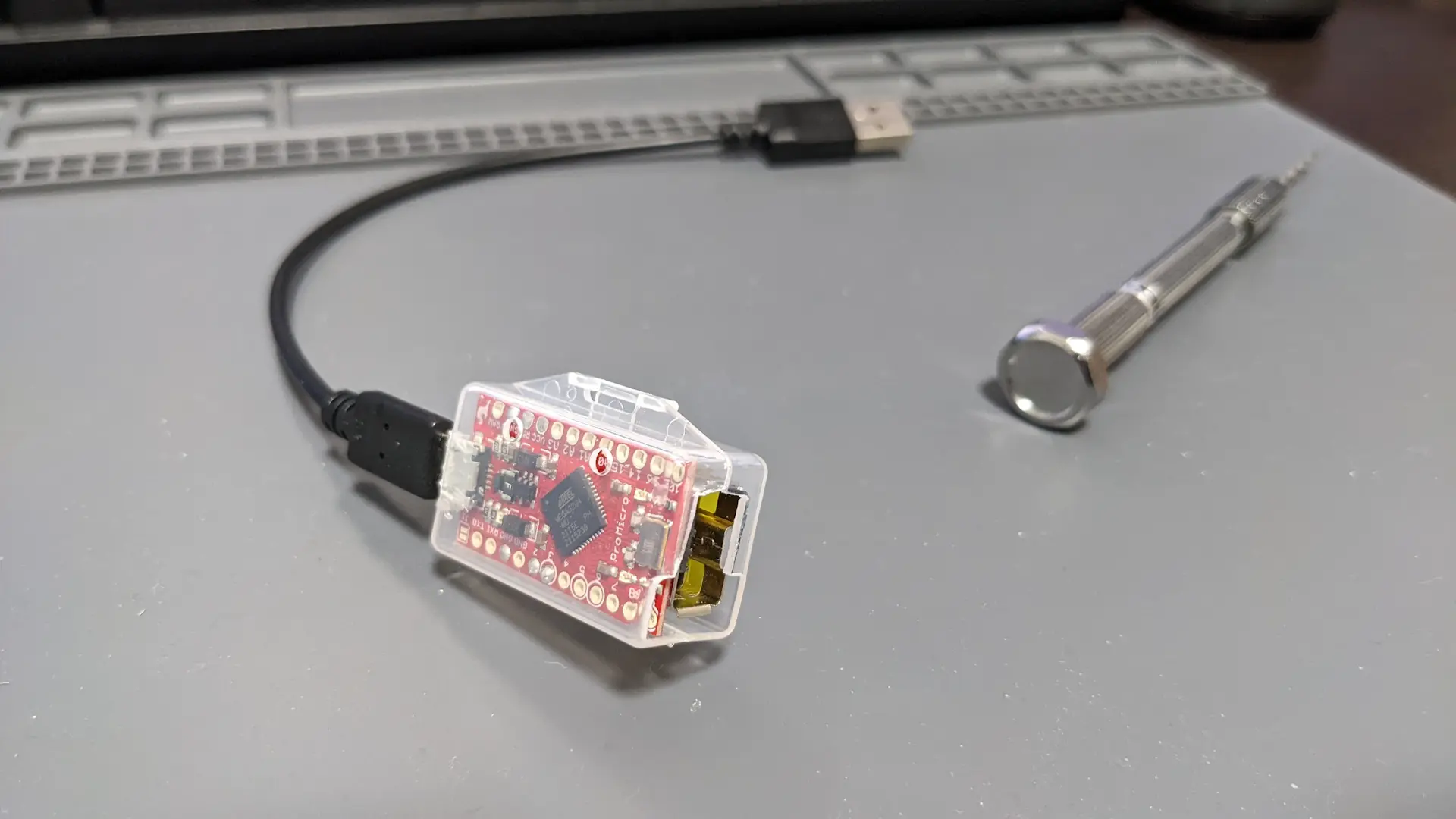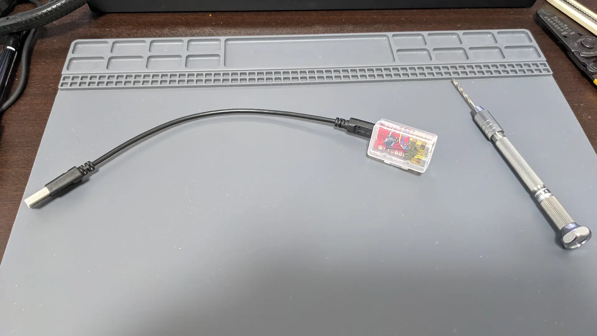 マイコンとPCを接続するためにUSBケーブルが必要である。コントローラーのケーブルは十分に長いので、USBケーブルは短いものが望ましい。