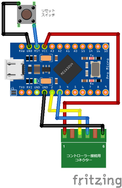 コントローラーとマイコンの接続にはコネクターを使用する。コネクターを使えばコントローラーに破壊的な改造を行う必要がなくなる。コネクターだけ販売しているサイトがある。