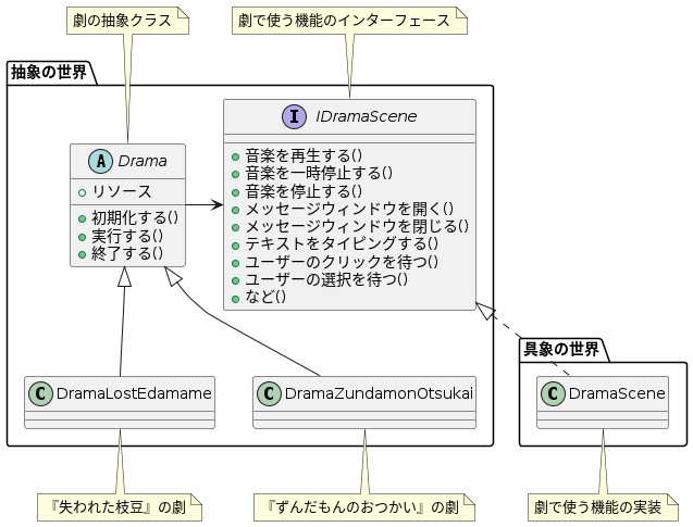 クリーンアーキテクチャという考え方に傾倒していたので、インターフェースを多用して抽象に依存するようにした。以下はゲームの肝の部分のクラス図である。